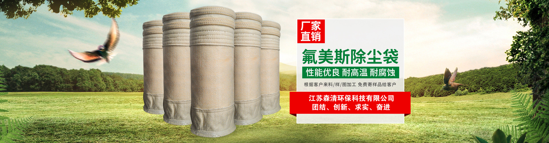 江蘇森清環保科技有限公司位于蘇北平原、黃海之濱的江蘇省阜寧經濟開發區濾料產業園,東臨沿海高速、西臨新長鐵路、北枕連云港口、南際鹽城機場,204國道繞廠而過。依托省級經濟開發區的優勢,以科技創新為先導、現代管理為基礎,企業發展蒸蒸日上。   公司主營無堿、中堿玻纖濾袋,PTFE浸漬膨體覆膜(水泥廠窯頭,窯尾專用),無紡高溫、中溫、常溫針刺氈濾袋,濾袋配件等,具有完備的專業安裝和售后服務體系。 ...